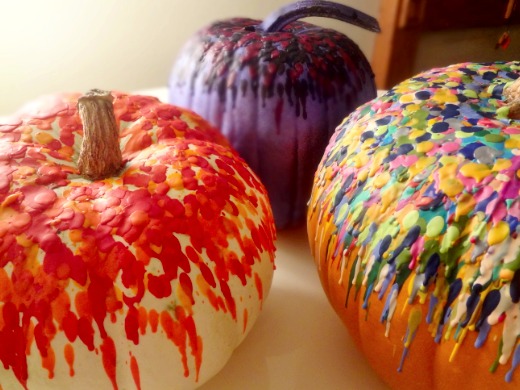 Dripping melting crayon wax onto pumpkins turns them into festive Halloween decor (and makes use of all those little crayon stubs):