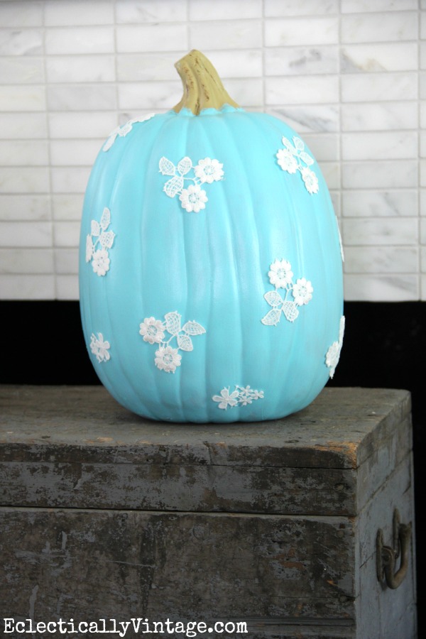 tissue paper pumpkinThis decoupage lace pumpkin craft lends a lovely vintage look to your decorating project: