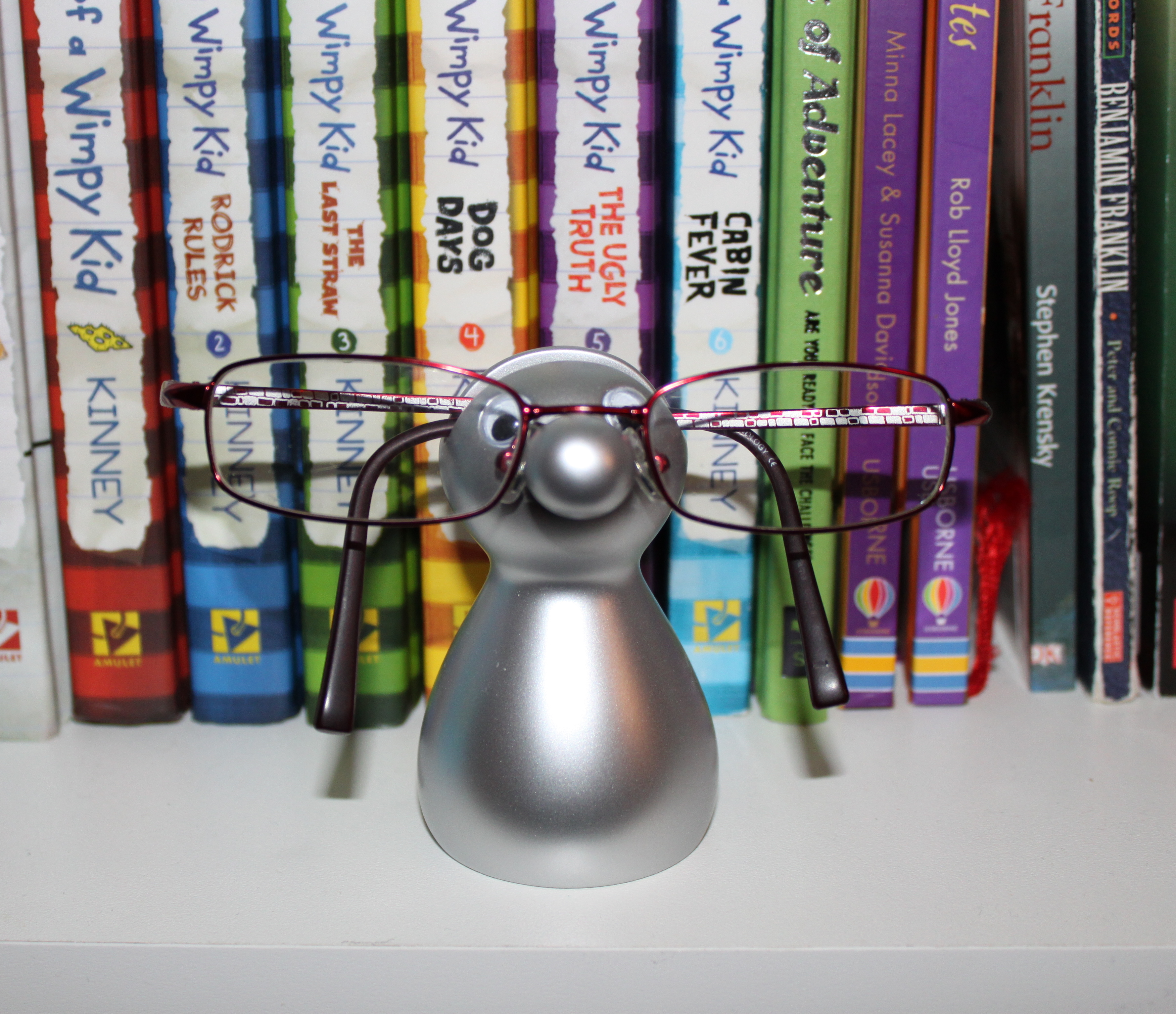 • Lay out clothes the night before.  It’s easier to let your child have a say in this the night before than fighting about it 5 minutes before you have to head out the door.  Everyday items like a watch or jewelry, wallet, or cellphone should also be included with the wardrobe.  And how many times have I heard “where are my glasses”?  Check out this cute glasses holder from The Container Store.  My son hasn’t misplaced his glasses since I put this on a shelf by his bed a few months ago.